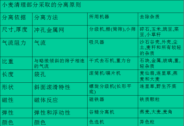 石磨面粉機械小麥清理部分采取的分離原則